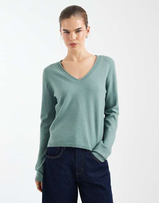 ONLY v-neck knitted top in light green