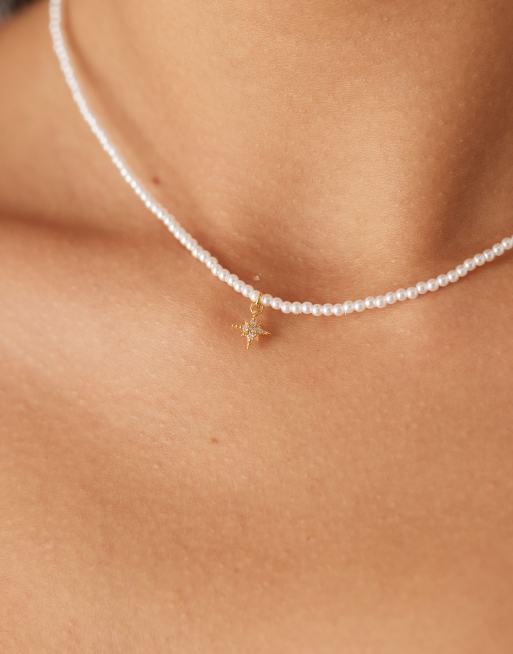 Orelia micro pearl and pave starburst necklace in gold plated