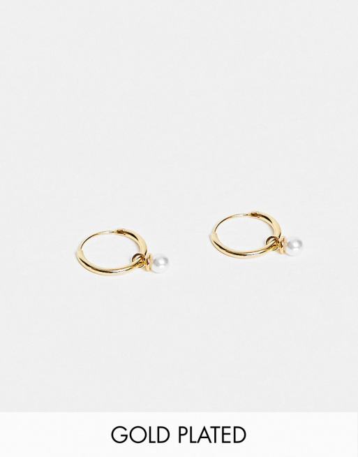 Orelia micro pearl drop huggie hoop earrings in gold plate