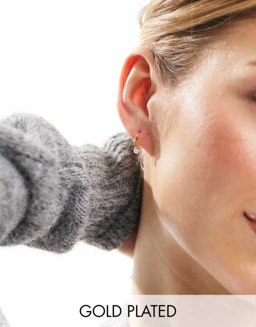 Orelia micro pearl drop huggie hoop earrings in gold plate