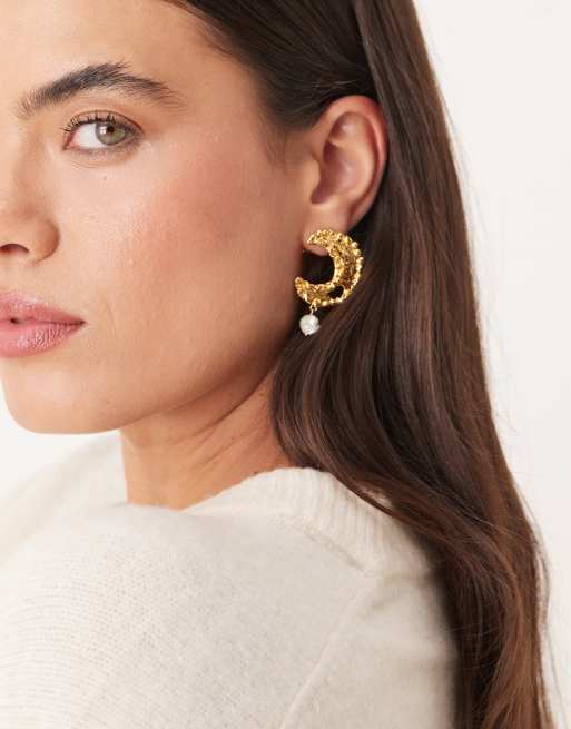 Orelia molten moon and pearl drop statement earring in 18k gold plated