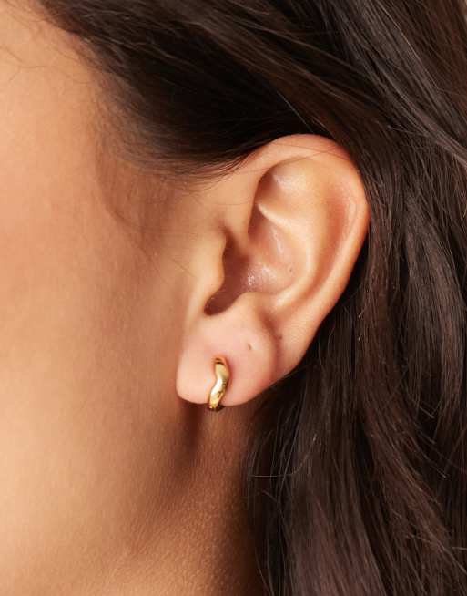 Orelia round wave huggie hoop earrings in 18k gold plated