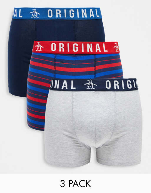 Original Penguin 3 pack boxers in blue grey and red stripe print