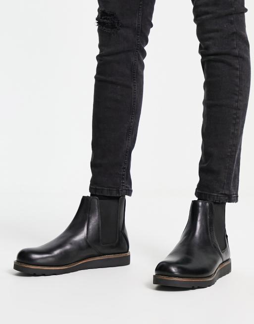 Original Penguin chunky high shine chelsea boots in black leather