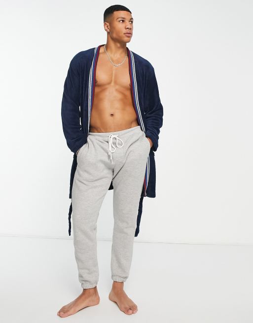 Original Penguin fleece robe with with stripe trim in navy