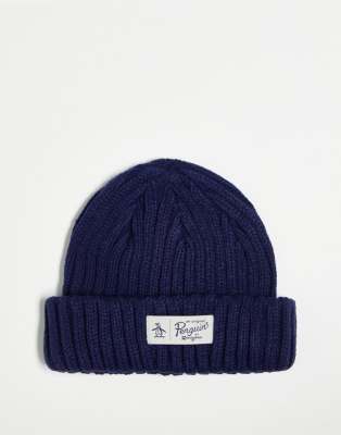 Original Penguin logo fisherman beanie hat in navy
