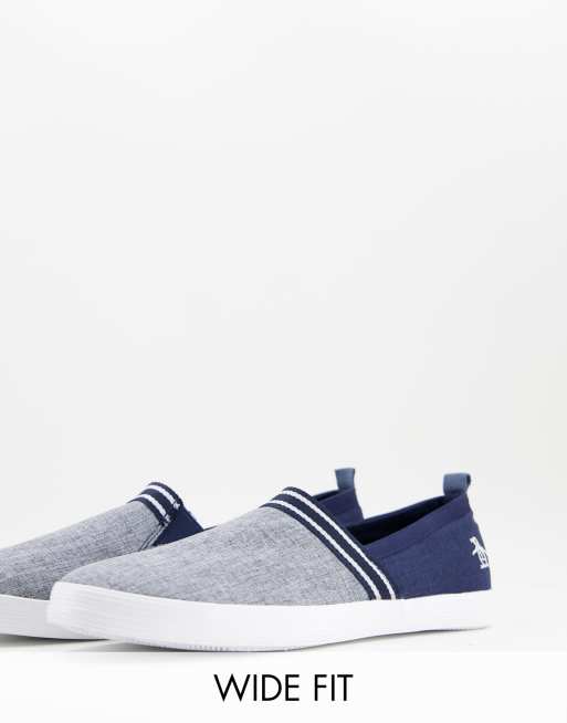 Original Penguin wide fit slip on plimsolls in grey navy mix