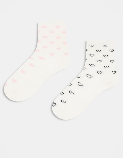& Other Stories 2 pack ankle socks with black and pink hearts in white