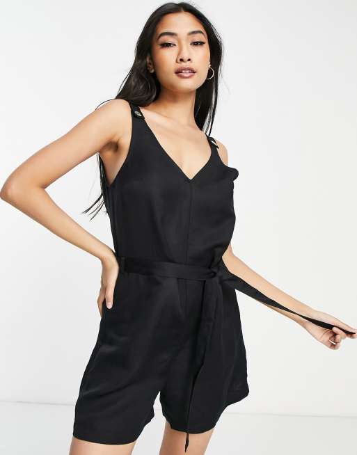 & Other Stories belted linen playsuit in black