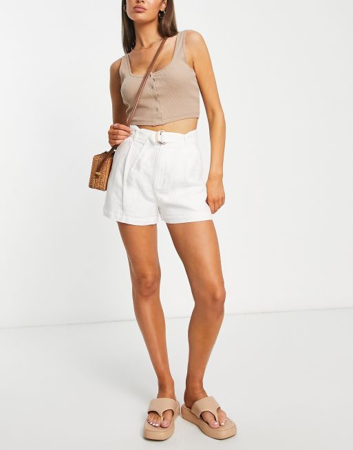 & Other Stories belted linen shorts in off white