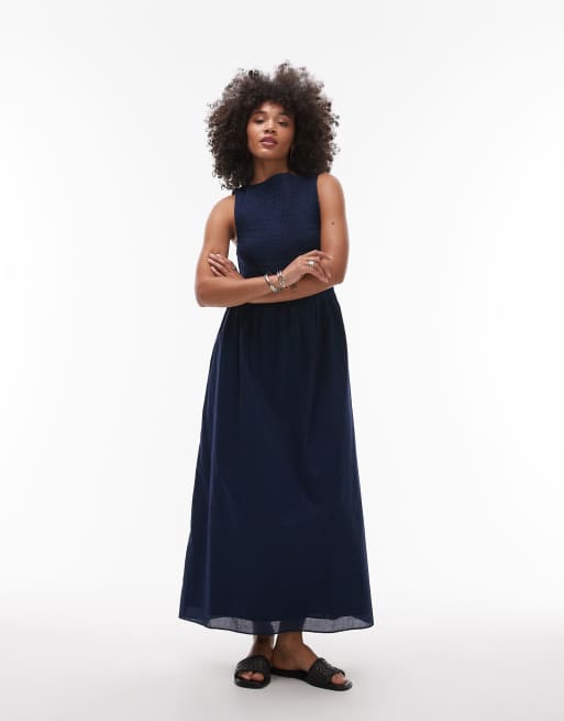 & Other Stories boat neck maxi dress with smocked bodice in blue
