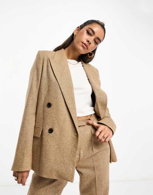 & Other Stories co-ord double breasted tweed blazer in beige melange