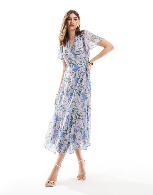 & Other Stories flutter sleeve midi dress with tiered hem in light blue floral print