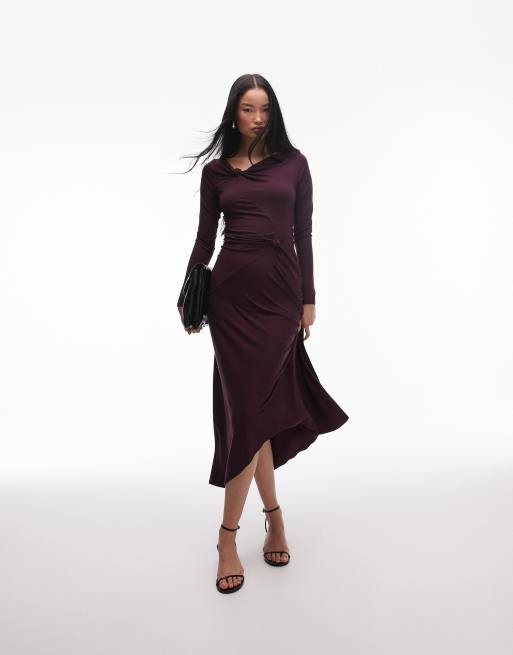 & Other Stories jersey long sleeve maxi dress with knotted wrap detail in purple
