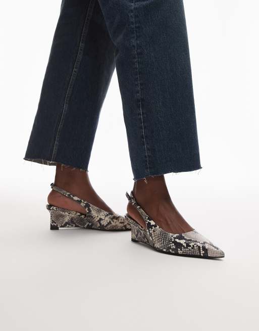 & Other Stories leather slingback wedge pump heel in grey snake print