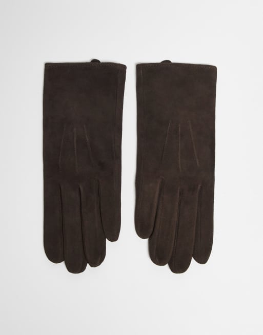 & Other Stories leather suede gloves in dark brown
