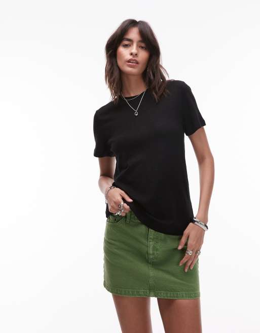 & Other Stories linen blend relaxed short sleeve t-shirt in black