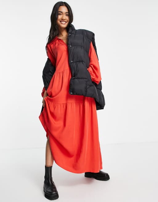 & Other Stories long sleeve smock maxi dress in red