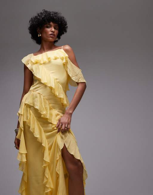 & Other Stories maxi slip dress with tiered ruffle detail and low tie back in yellow