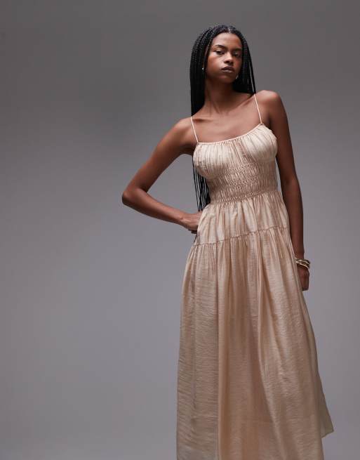 & Other Stories milkmaid midi dress with smocking and spaghetti straps in beige