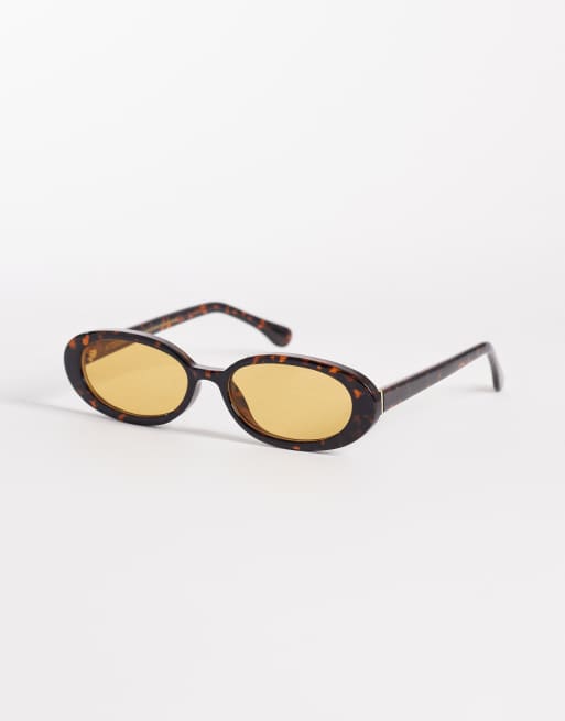 & Other Stories oval slim fit sunglasses in brown tortoise with linen pouch case