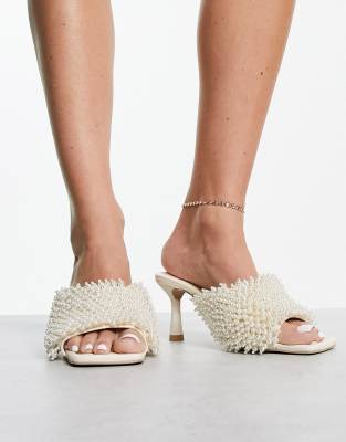 & Other Stories pearl covered heeled mules in white