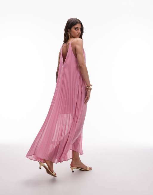 & Other Stories pleated chiffon maxi dress with deep v-back in pink