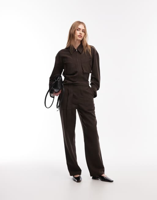 & Other Stories pure cotton utility style jumpsuit with tie front belt in brown