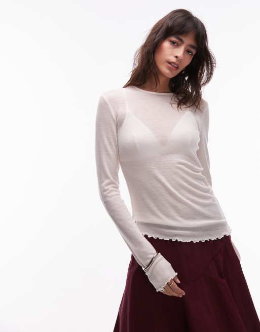 & Other Stories pure wool lettuce edge long sleeve top with thumbhole detail in white