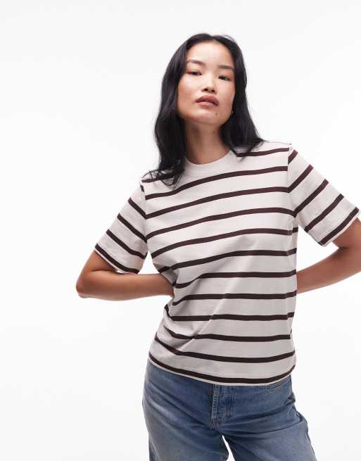 & Other Stories relaxed short sleeve t-shirt in beige and brown stripes