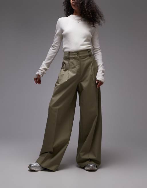 & Other Stories relaxed wide leg tailored trousers with pleat front in khaki
