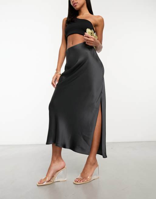 & Other Stories satin slip maxi skirt in dark grey