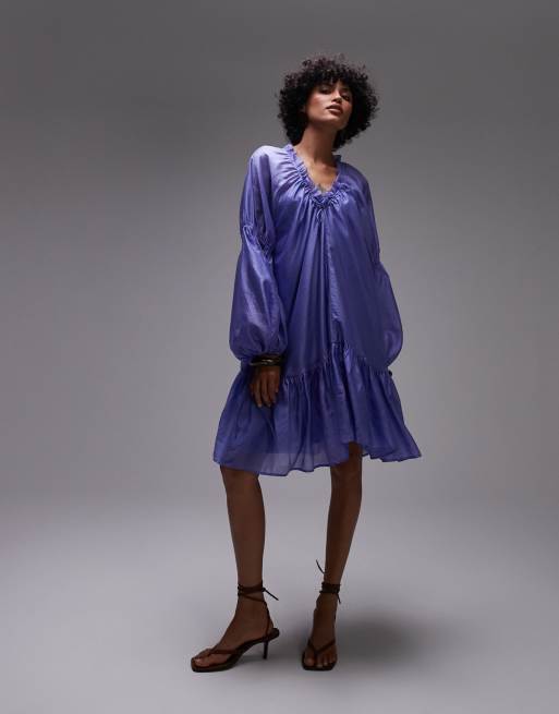 & Other Stories semi sheer mini dress with volume sleeves in blue