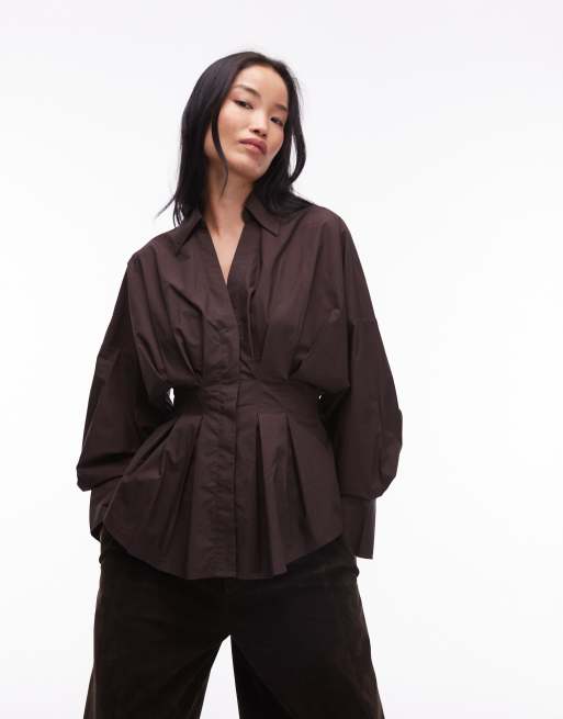 & Other Stories shirt with cinch waist and volume sleeves in brown