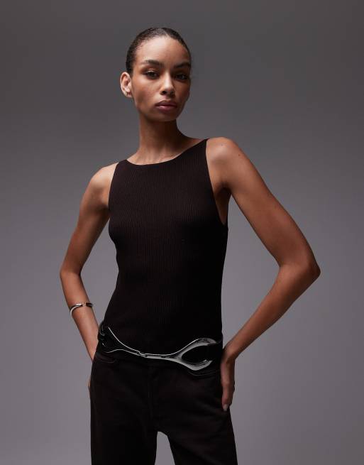 & Other Stories sleeveless boatneck knitted top in brown