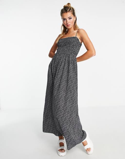 & Other Stories smock detail cami midi dress in black ditsy floral print