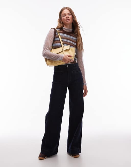 & Other Stories wide leg jeans with jet pockets in dark wash blue