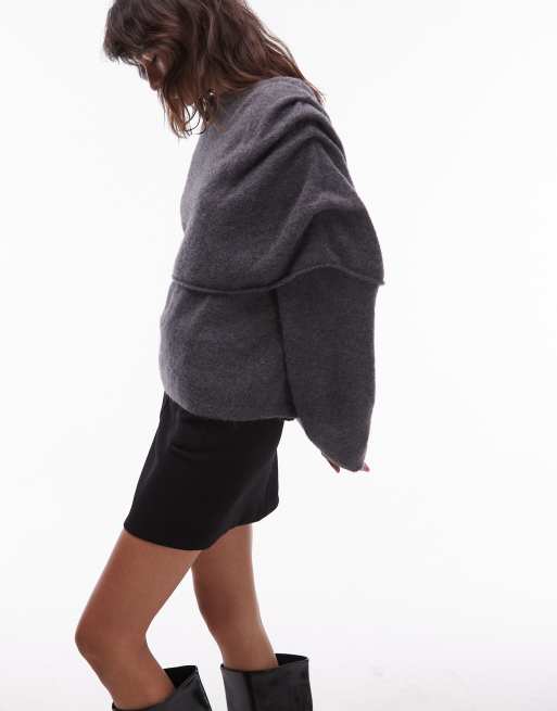 & Other Stories wool alpaca swaddled drape sweater in dark grey