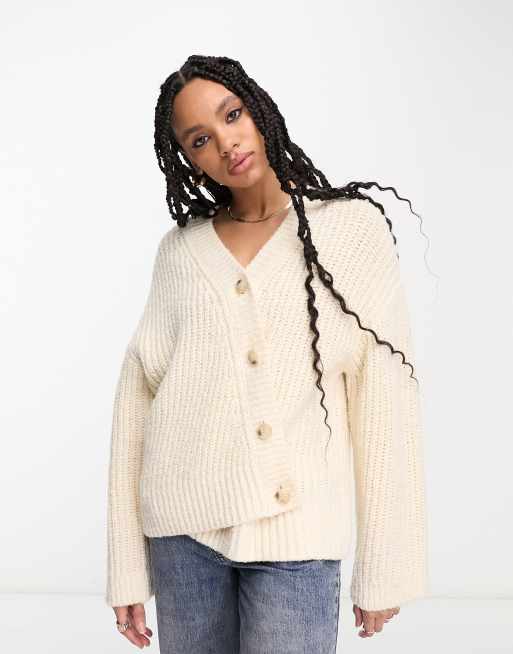 & Other Stories wool asymmetric button cardigan in off white