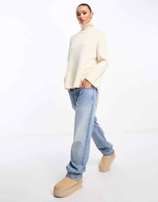 & Other Stories wool high neck oversize jumper in white