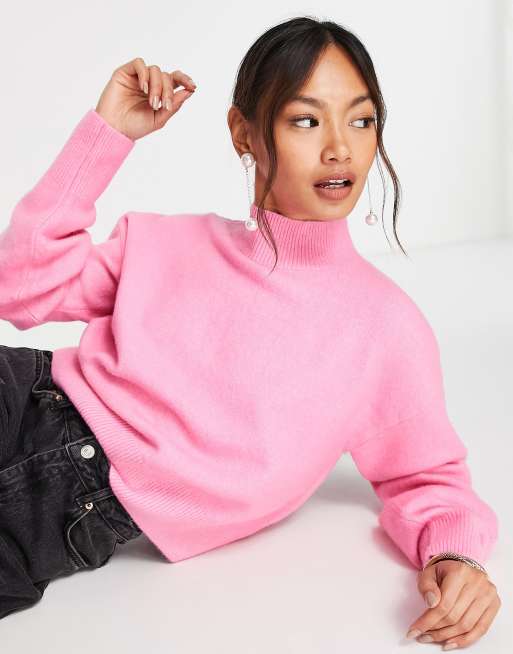 & Other Stories wool mock neck jumper in hot pink - PINK