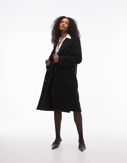& Other Stories wool single breasted midi coat with flap pockets in black
