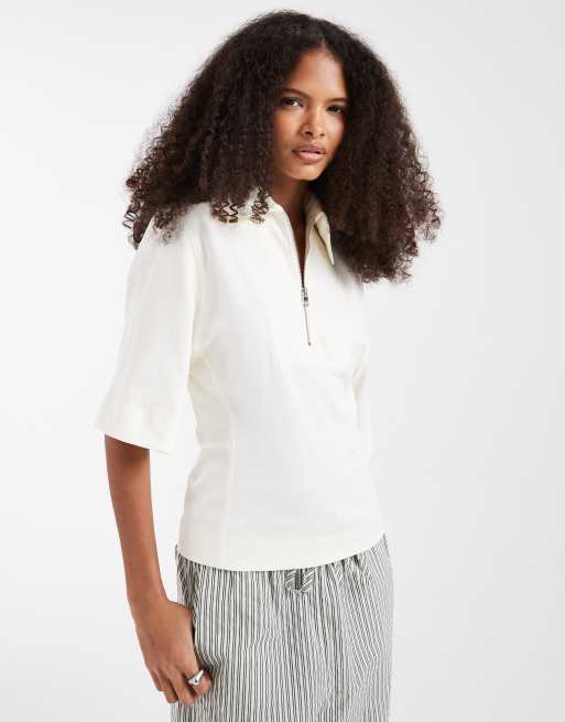 & Other Stories zip up polo top in white
