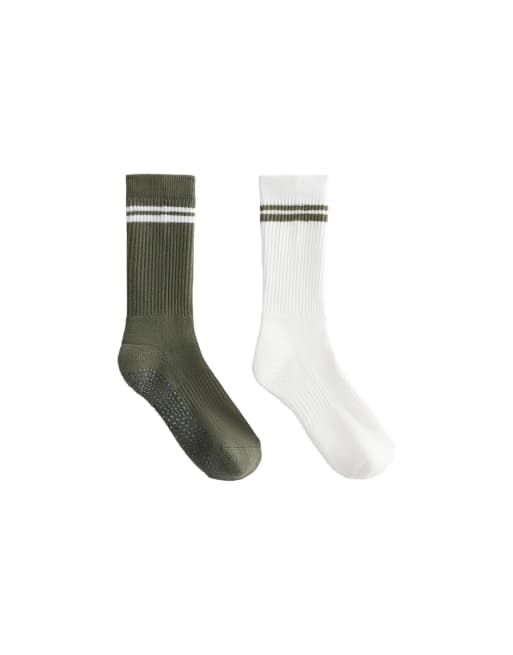 OYSHO 2 pairs of classic cotton blend yoga and pilates socks in green