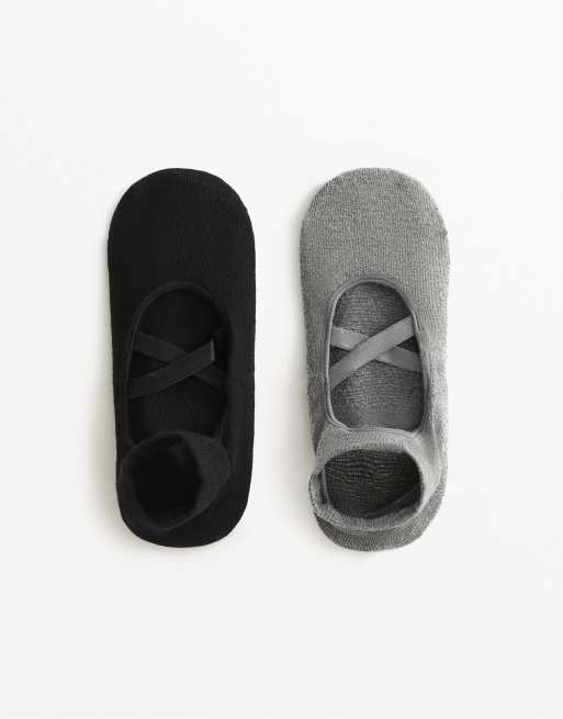 OYSHO 2 pairs of cotton blend yoga and pilates socks with crossover straps in black