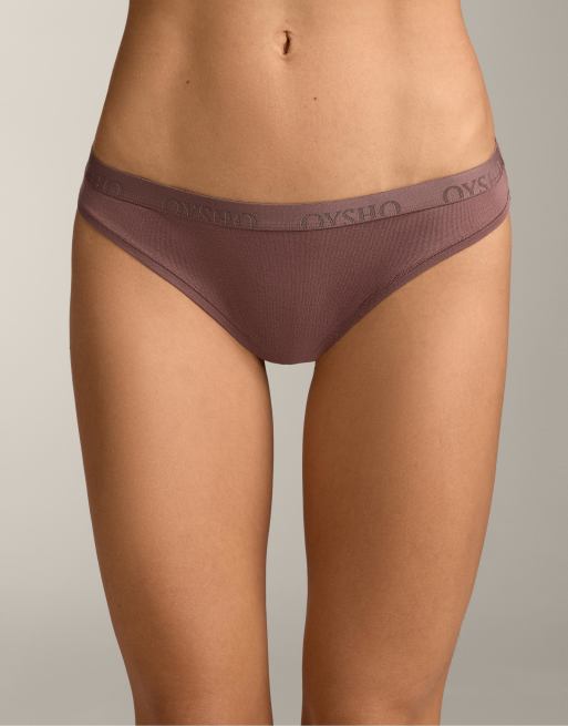 OYSHO 3 cotton blend classic briefs with logo in mid stone melange