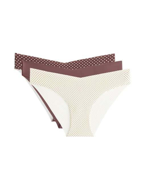 OYSHO 3 invisible laser-cut v-cut polyamide blend classic bikini briefs in brown