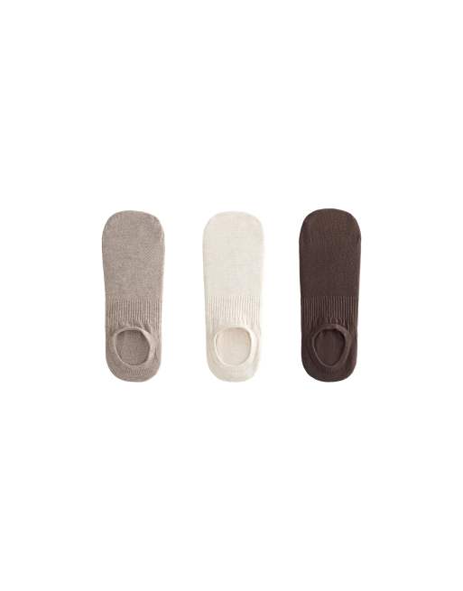 OYSHO 3 pairs of high-cut cotton blend invisible sports socks in tan melange