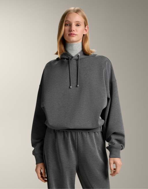 OYSHO Boxy hooded sweatshirt with brushed modal marl in grey