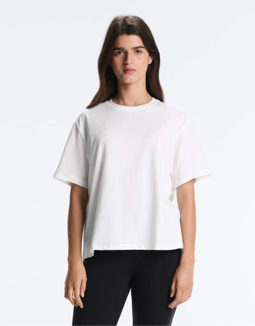 OYSHO Boxy short sleeve cotton blend t-shirt in off-white